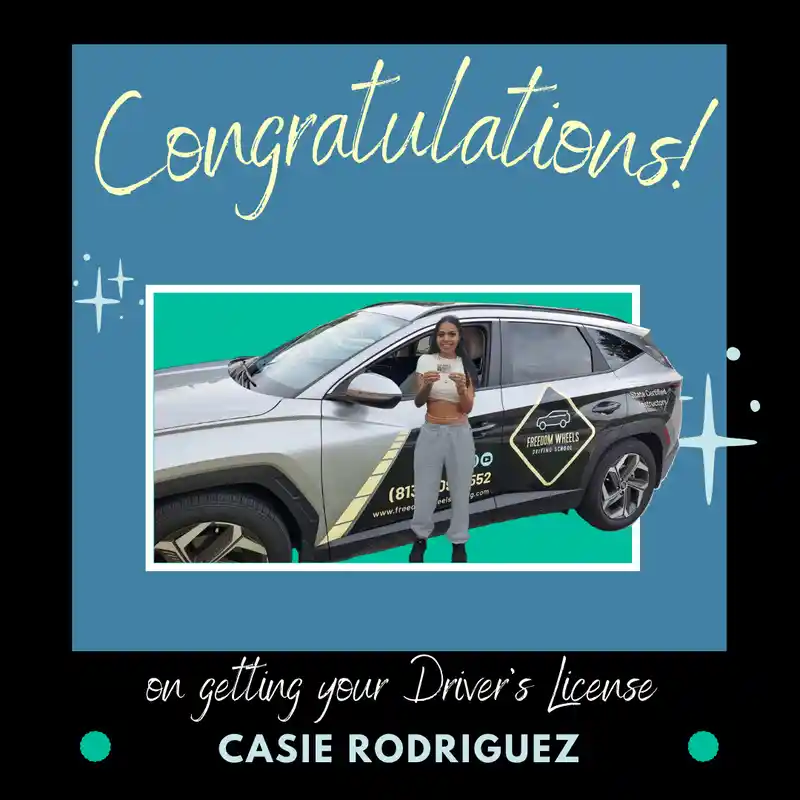 Congratulations to Casie Rodriguez on acing the test and joining the Freedom Wheels Family – way to go! #NewDriverAlert #FreedomWheelsSuccess